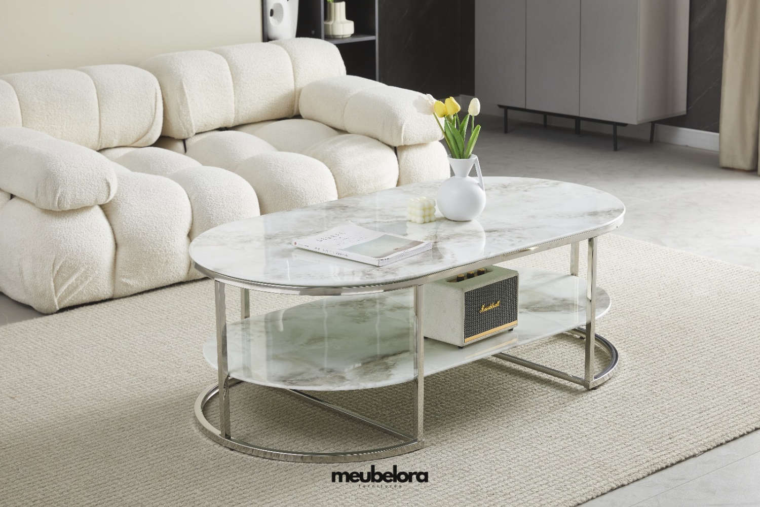Salontafel 'Ena' 130cm Ovaal — Poten in Zilverkleur