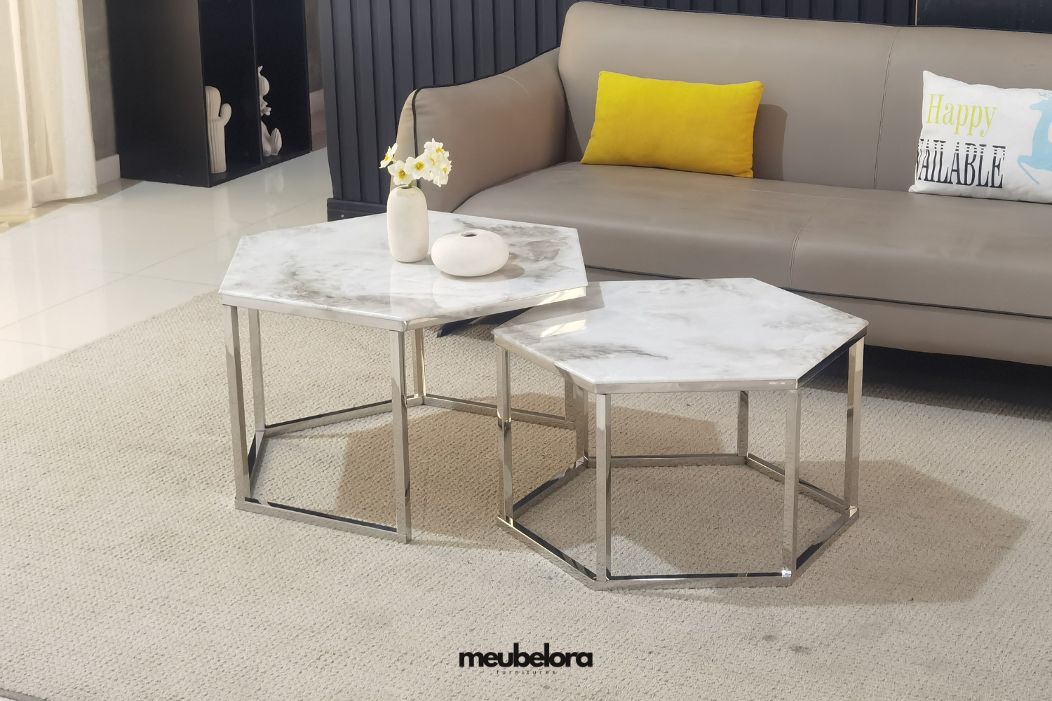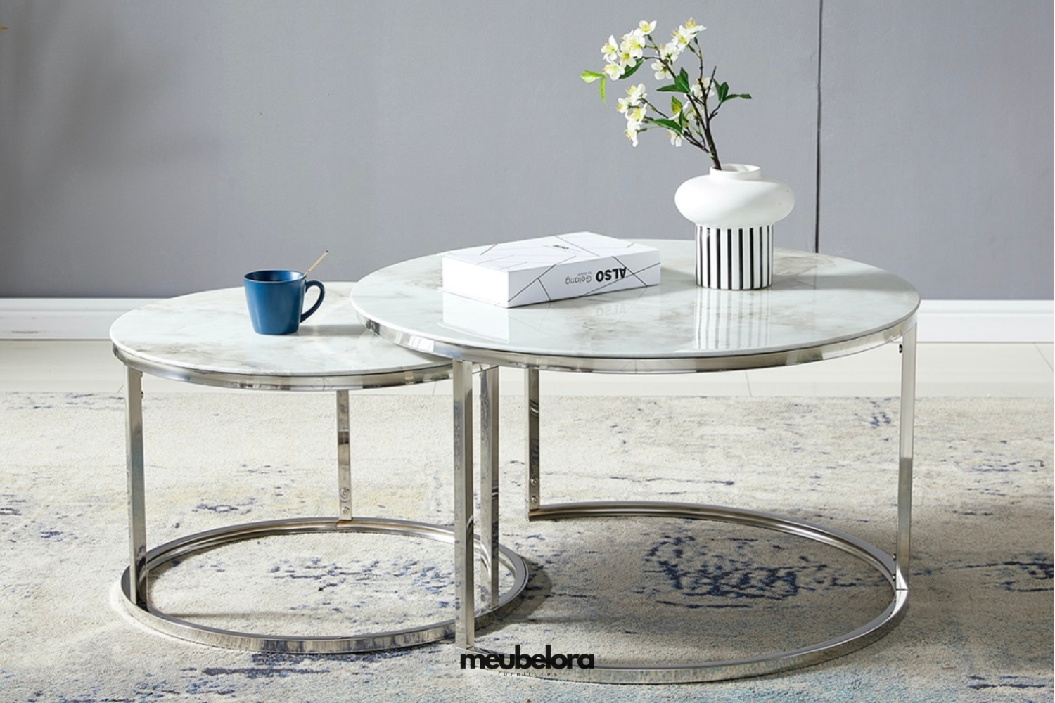 Salontafel 'Hima' Tweedelig 80-70cm — Poten in Zilverkleur