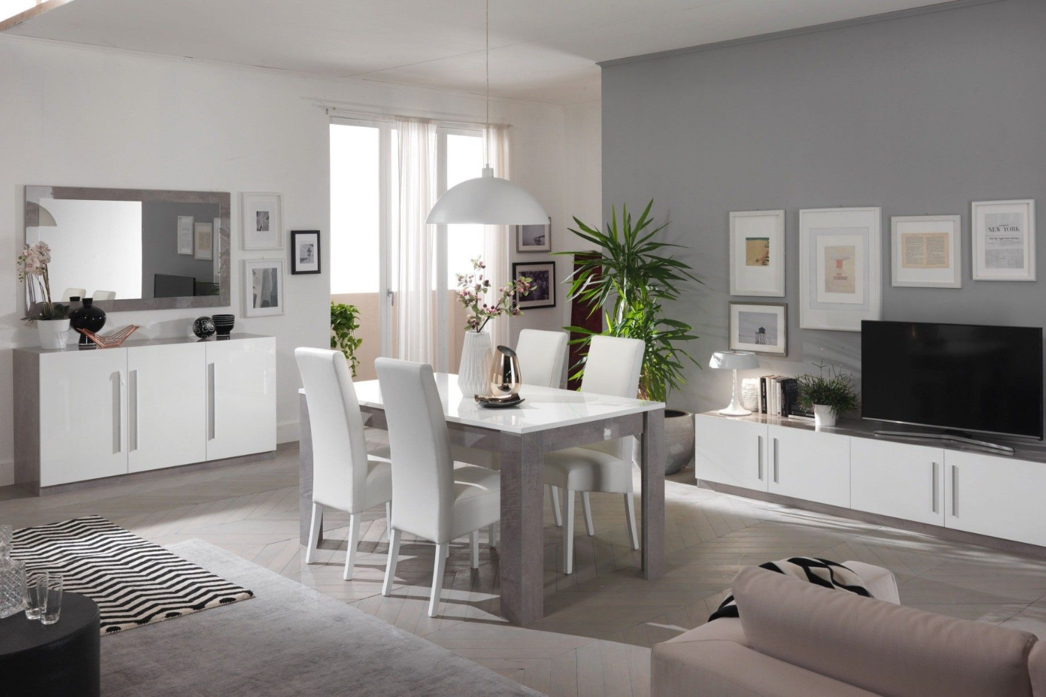 Dressoir Greta - 156cm - 3 Deuren - Grijs Wit Hoogglanslak