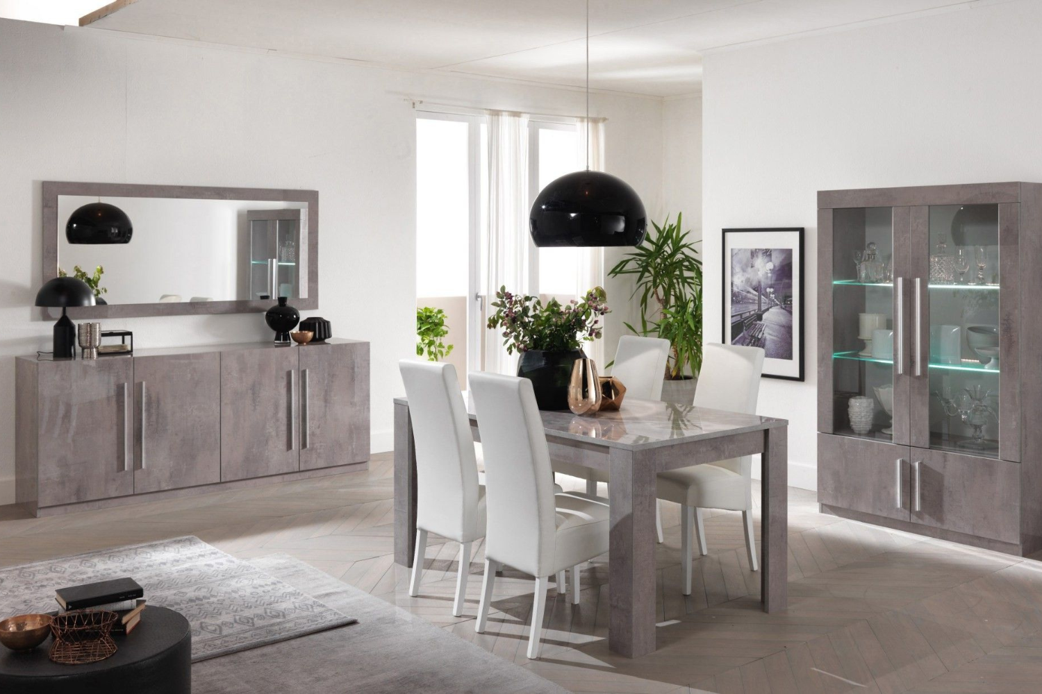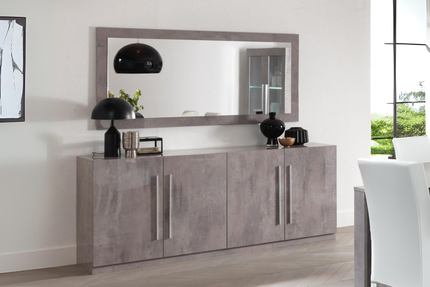 Dressoir Greta - 207cm - 4 Deuren - Grijs Hoogglanslak