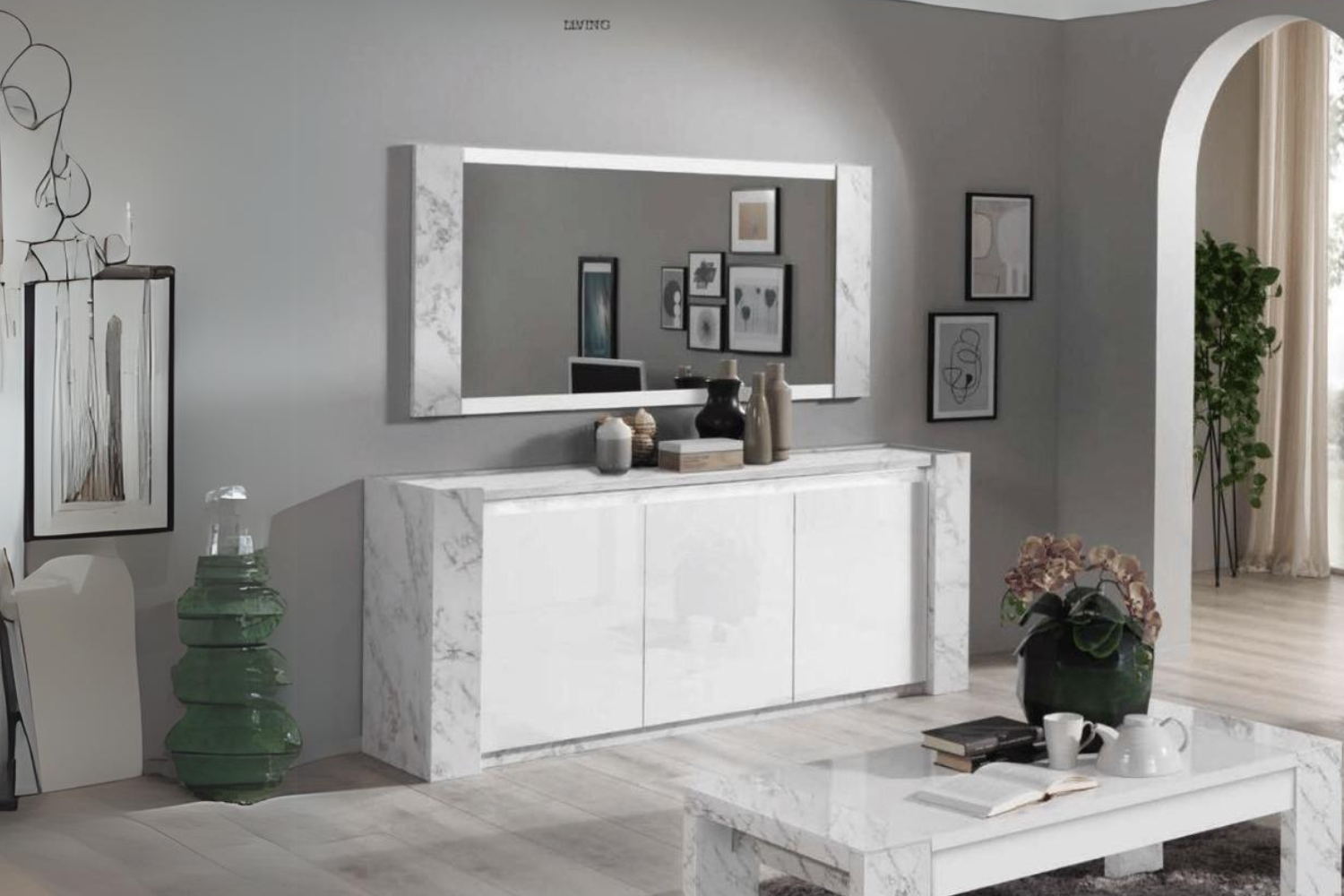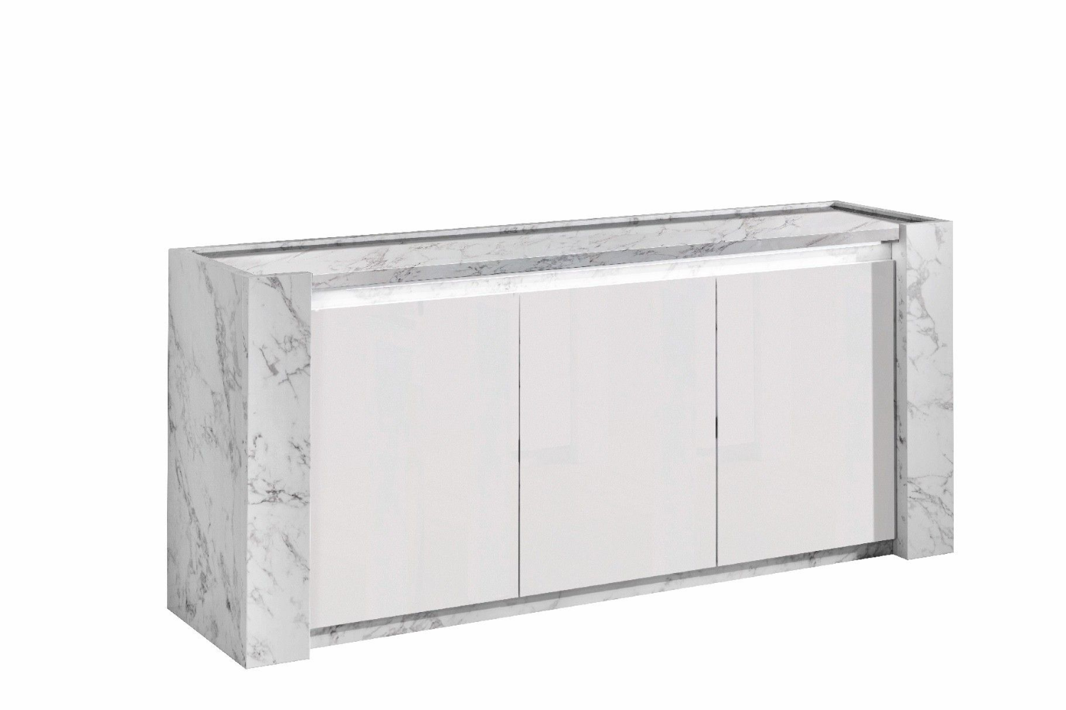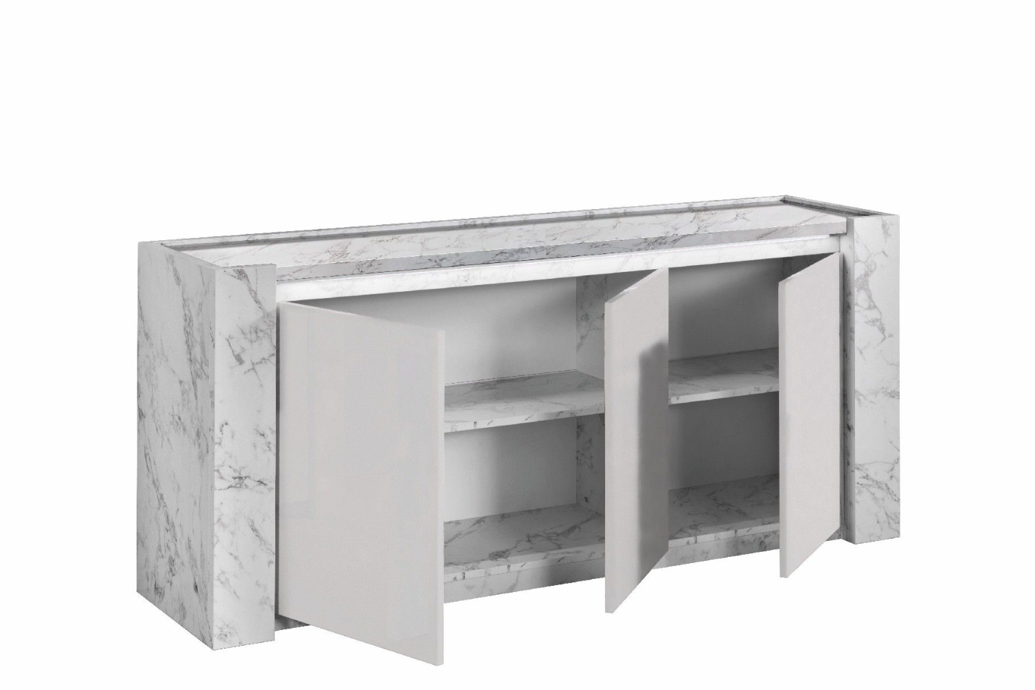 Dressoir Vittoria - 195cm - 3 Deuren - Marmer Wit Grijs