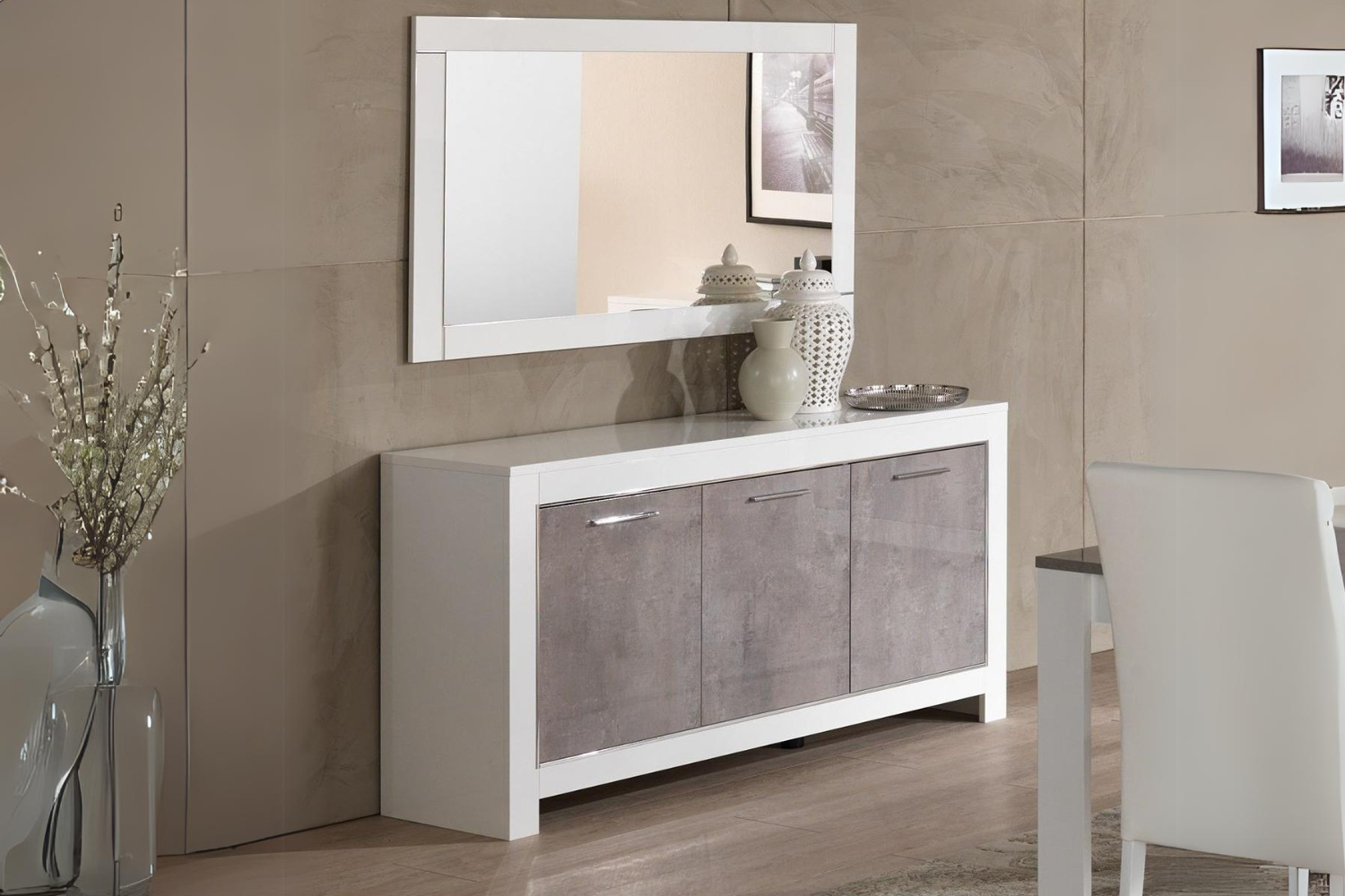 Dressoir Modena 3 Deuren - Witte en Betonkleurige Hoogglanslak