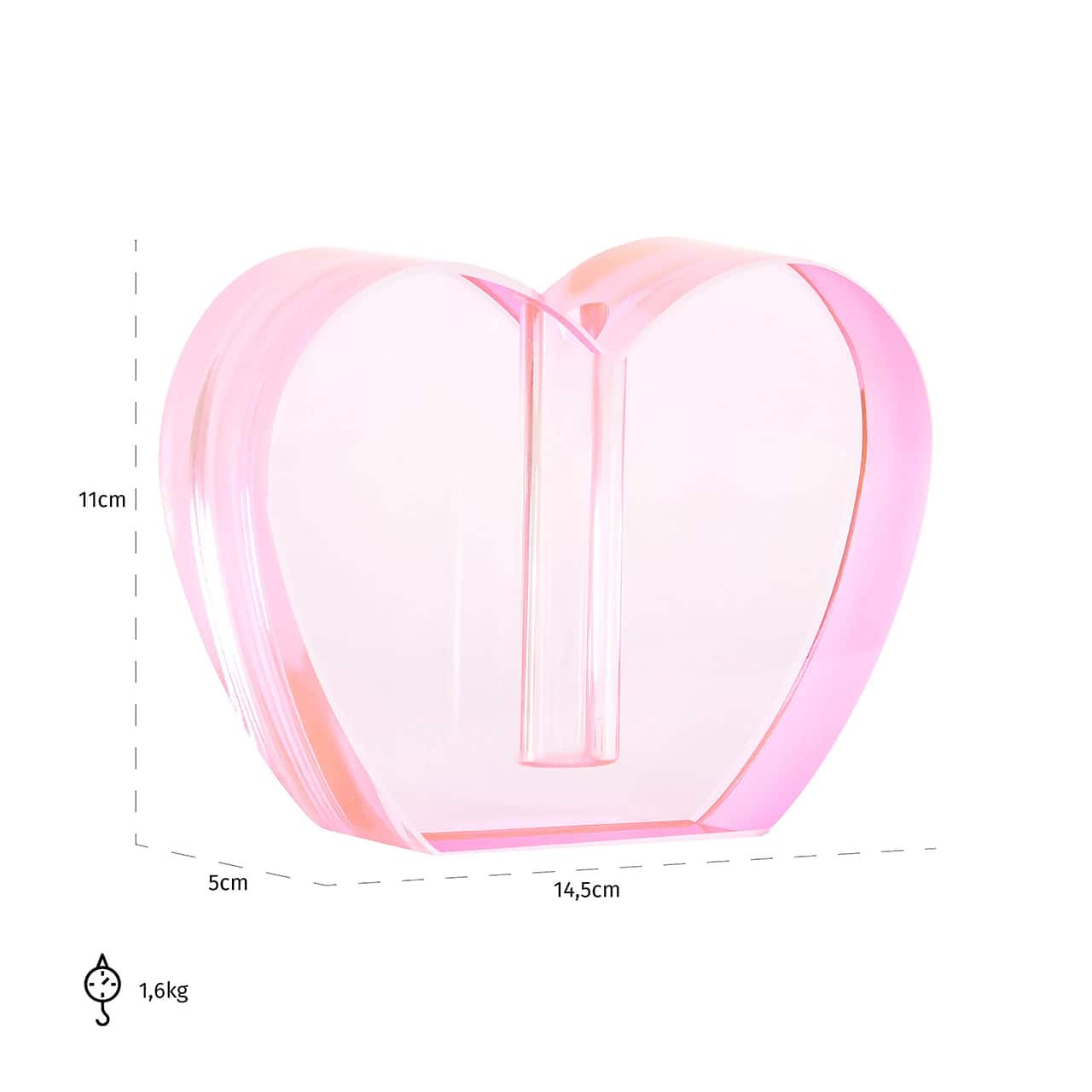 De kandelaar is uitgevoerd in pink en vervaardigd uit glass.