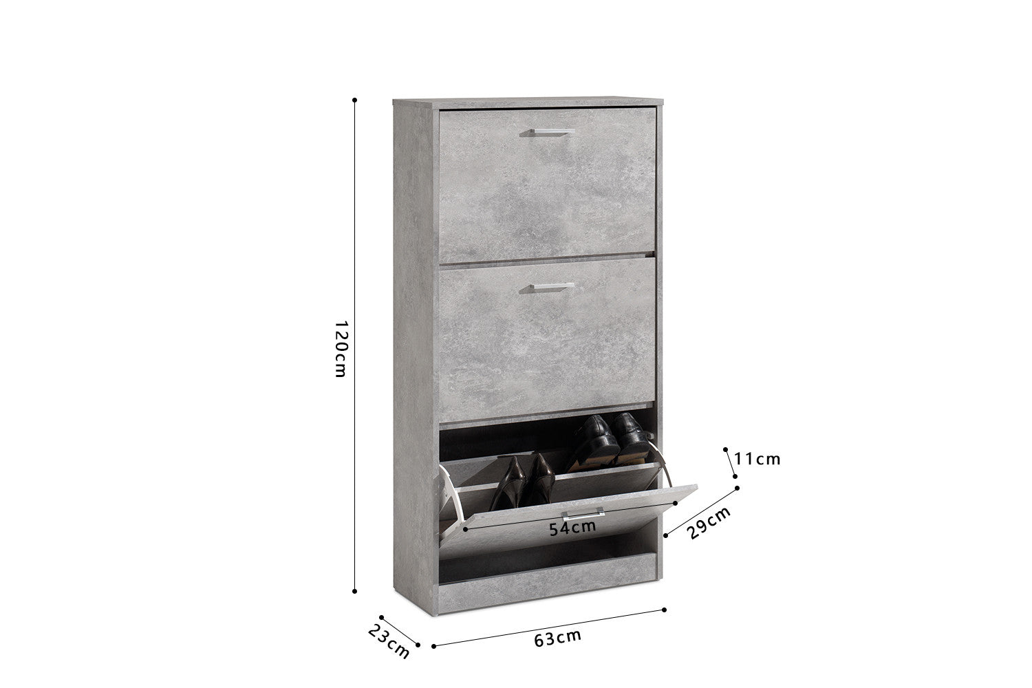 Schoenenkast 'Carini' 3 laden Beton