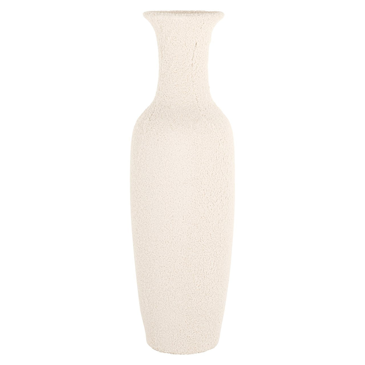 De vaas is uitgevoerd in white en vervaardigd uit coated ceramic, fluffy fabric.