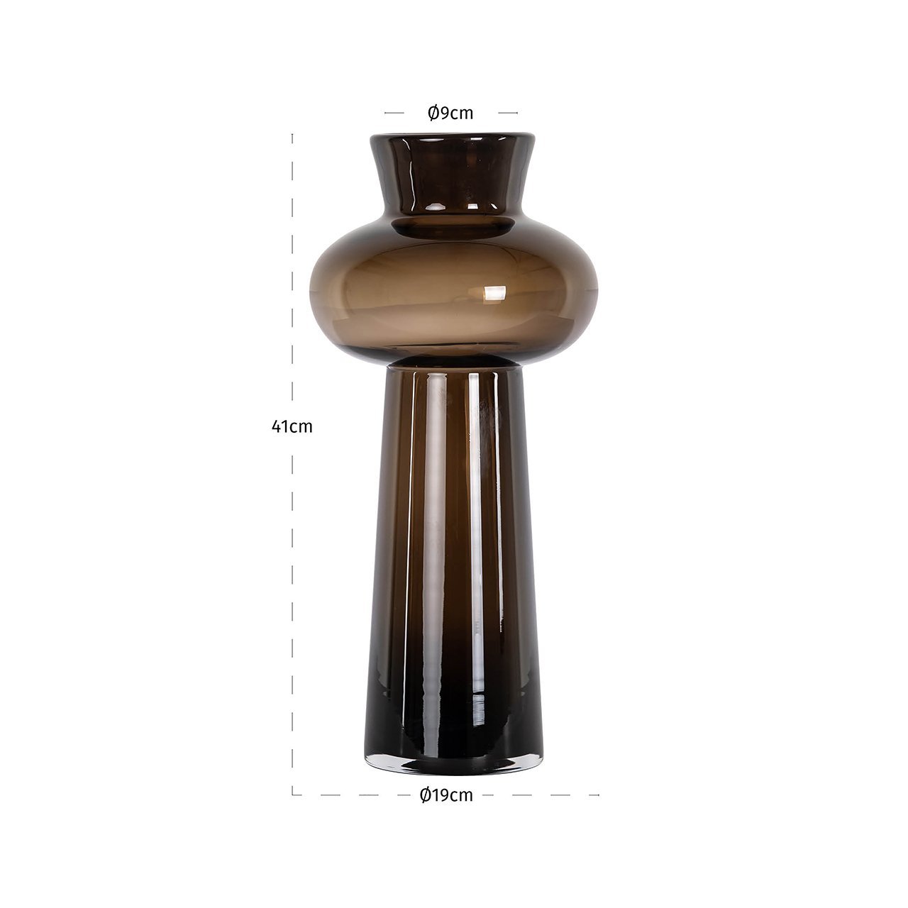 De vaas is uitgevoerd in brown en vervaardigd uit glass.