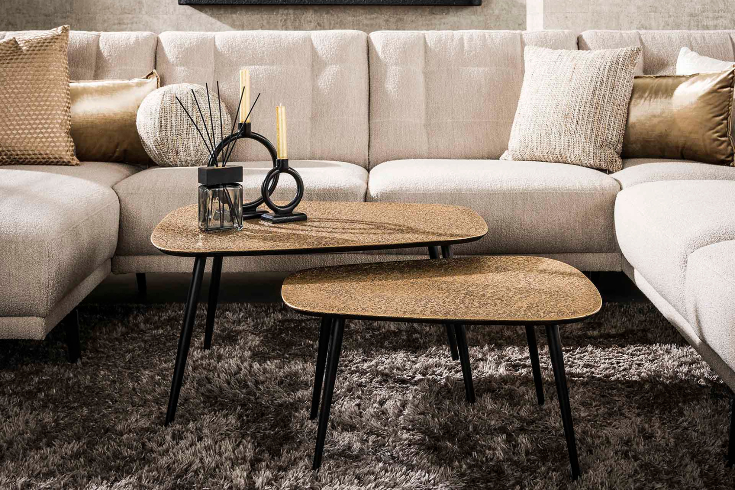 Salontafel — Driehoekige steen — Set van 2 — Marmer composiet