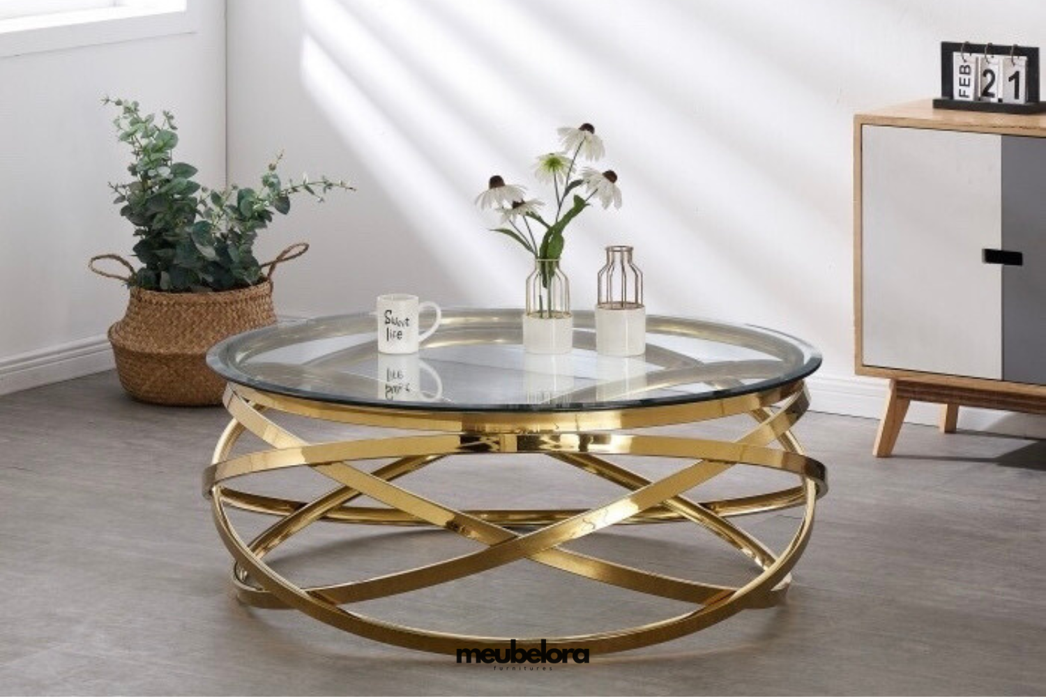 Salontafel 'Wave' 100cm Rond — Poten in Goudkleur