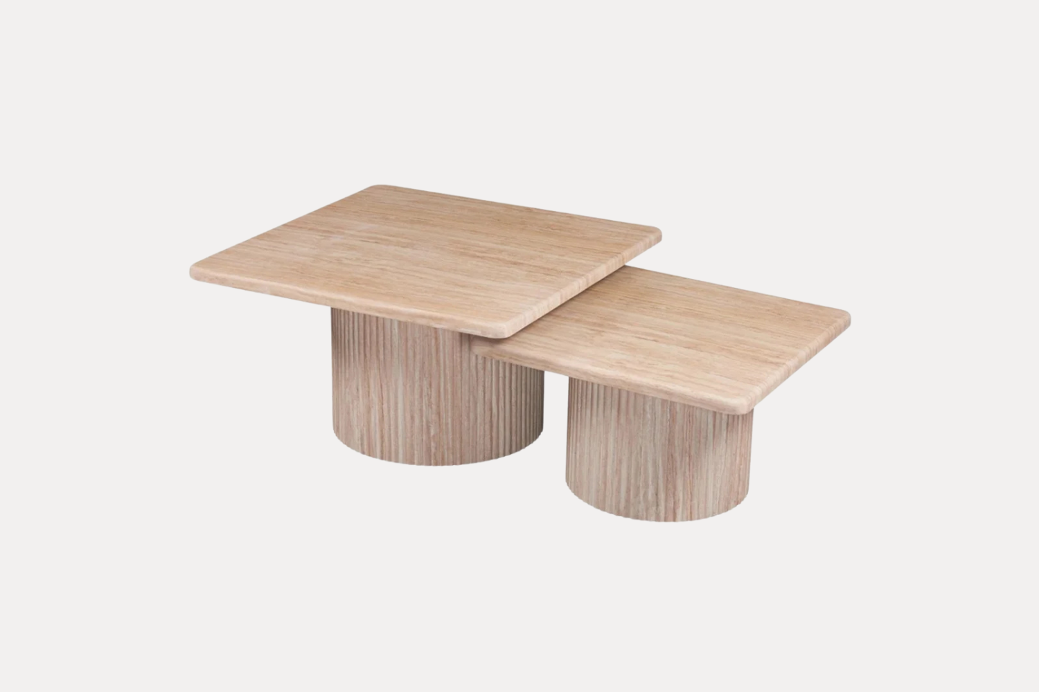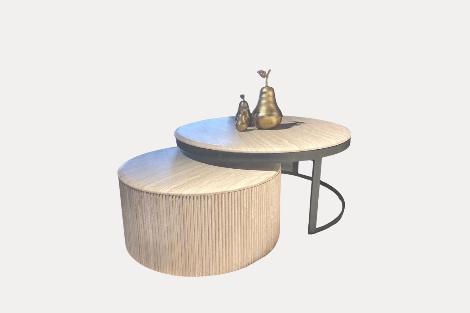 Salontafel Zora Duo - Set van 2 - Travertinlook & Notenhout
