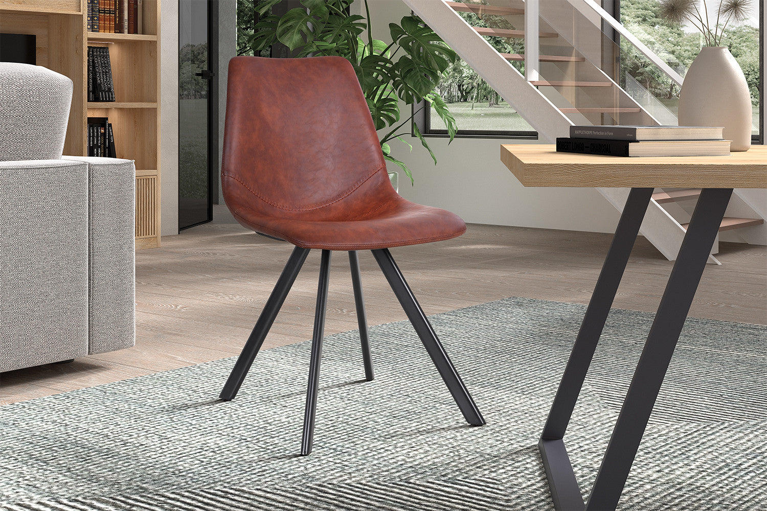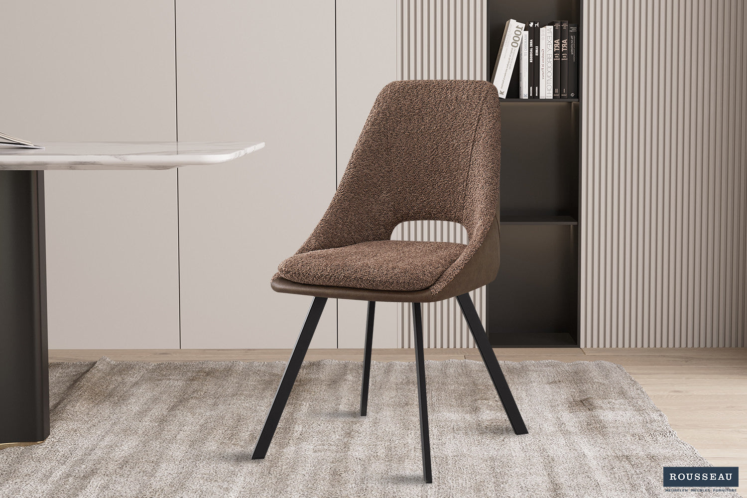 Stoel 'Filou' Bouclé Zand Rug PU Bruin