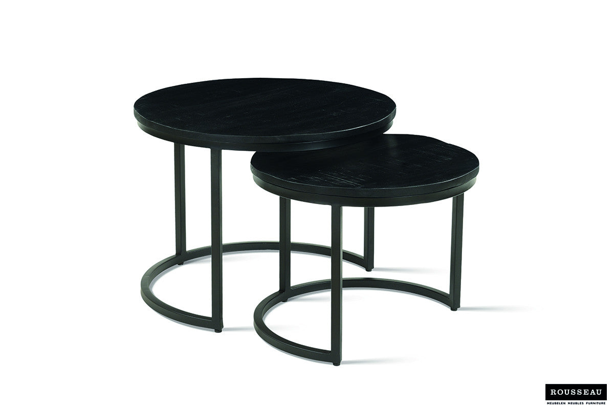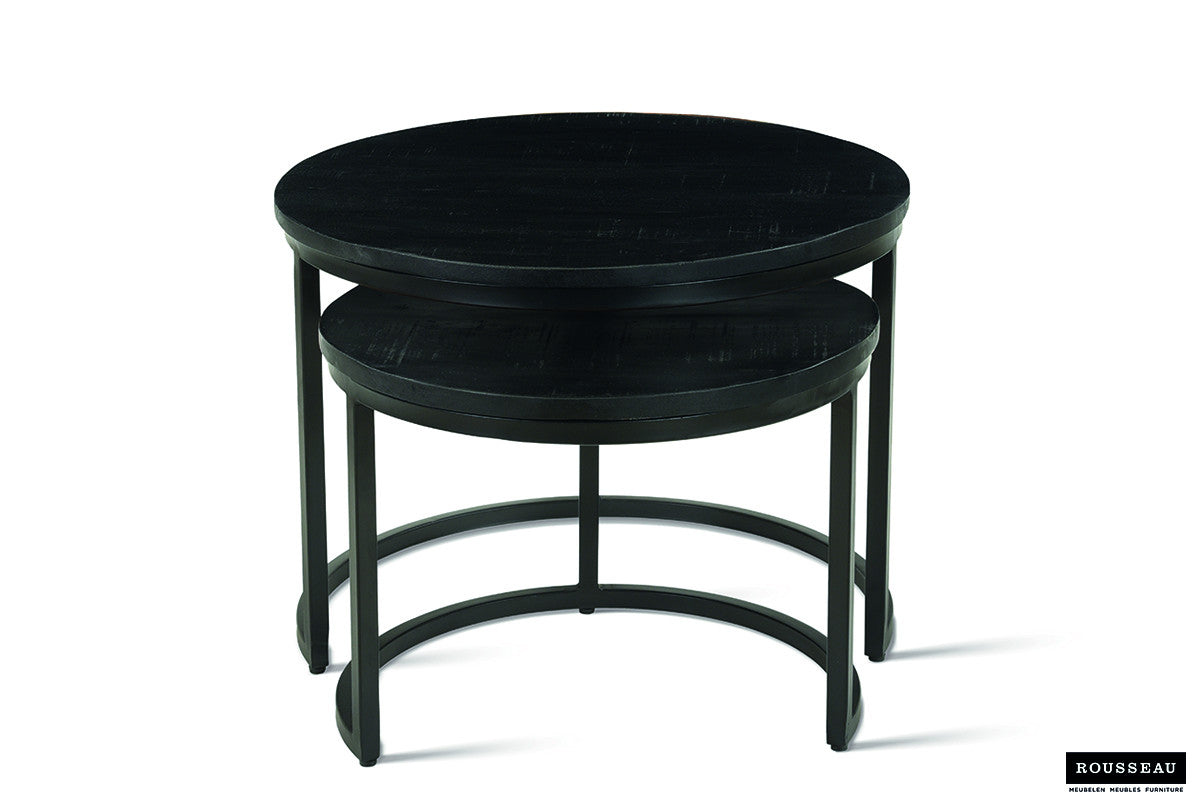 Salontafel 'Goja' 2-delig Mango hout zwart – Rousseau