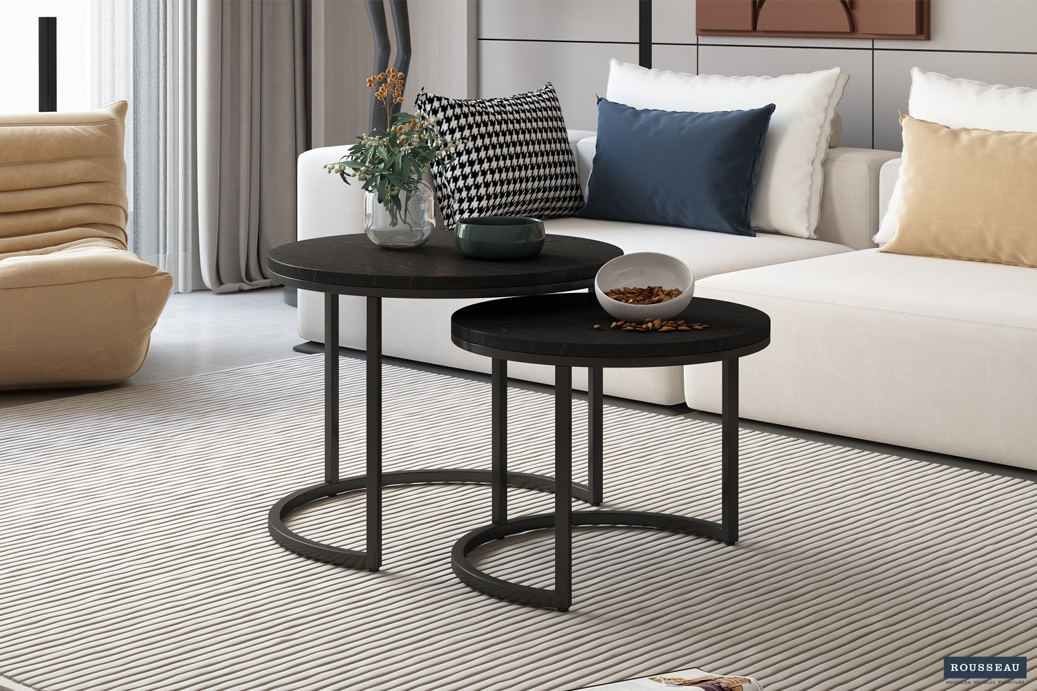 Breng stijl en comfort samen met de Salontafel 'Goja' 2-delig Mango hout zwart. Dit hoogwaardige meubelstuk van Rousseau is ontworpen om jouw interieur een elegante en moderne uitstraling te geven.