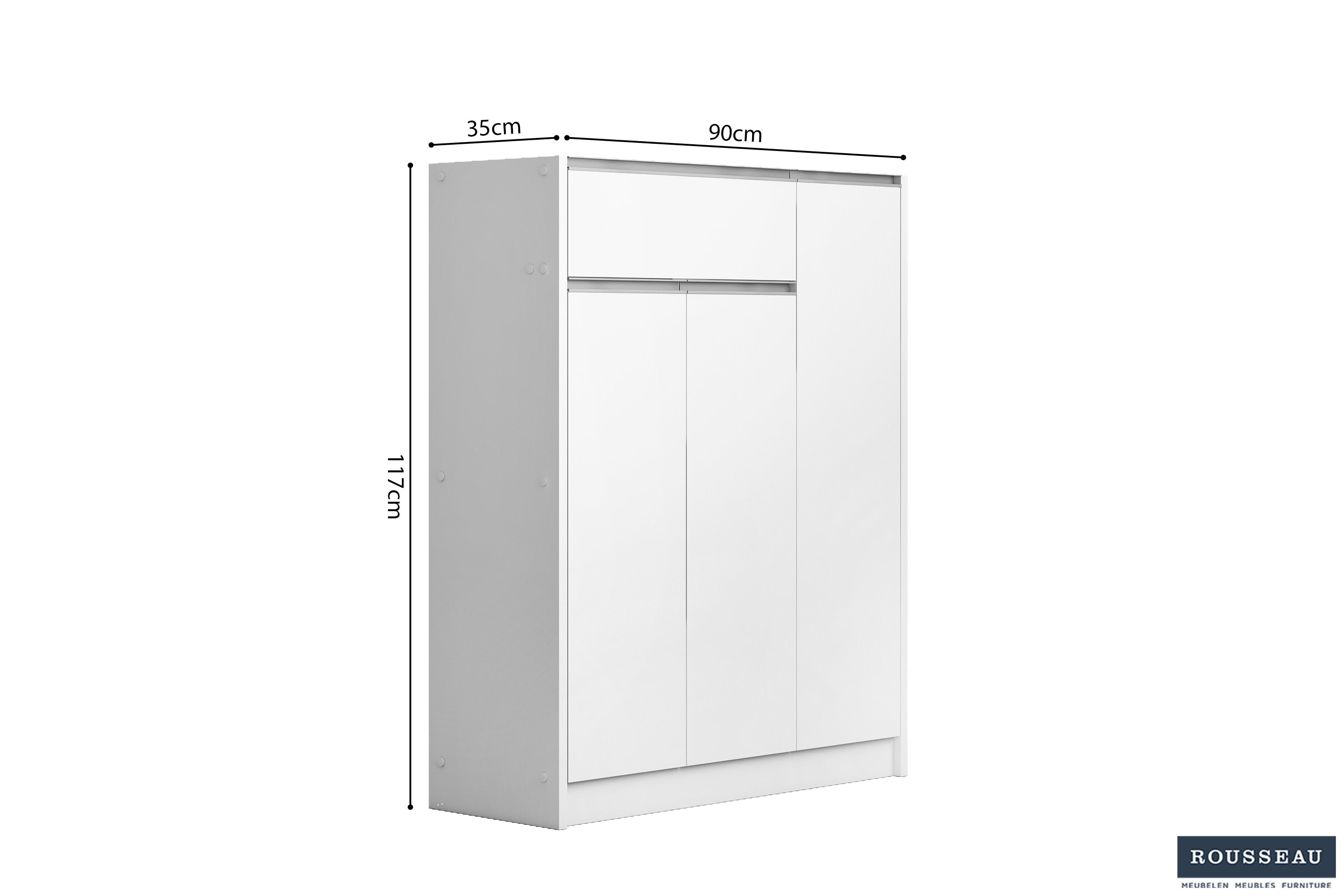 Schoenenkast 'Lilly' 3 deuren en 1 lade Wit – Rousseau