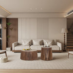 Breng stijl en comfort samen met de Salontafel 'Luuk' 70 cm Rond Mango hout met Travertin Beige. Dit hoogwaardige meubelstuk van Rousseau is ontworpen om jouw interieur een elegante en moderne uitstraling te geven.