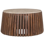 Salontafel 'Luuk' 70 cm Rond Mango hout met Travertin Beige