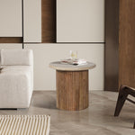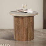 Bijzettafel 'Louis' 50 cm Mango hout met Travertin Beige