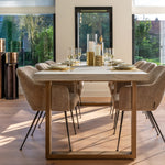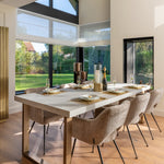 De Whitebone eettafel is een stijlvolle toevoeging aan elk eigentijds interieur. Het blad is afgewerkt in een verfijnd visgraatpatroon van eikenfineer, wat een klassiek gevoel combineert met een moderne twist. De warme grijstint Verona Grey zorgt voor een elegante, rustige sfeer die perfect past in zowel minimalistische als landelijke interieurs.