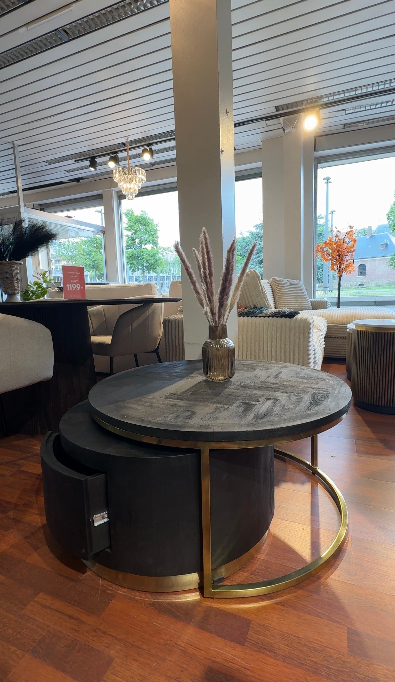 OUTLETDEALS // SALONTAFEL 2/DELIG ZWART FINEER MET GOUDKLEUR