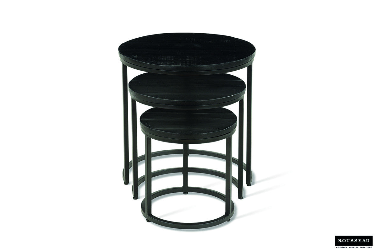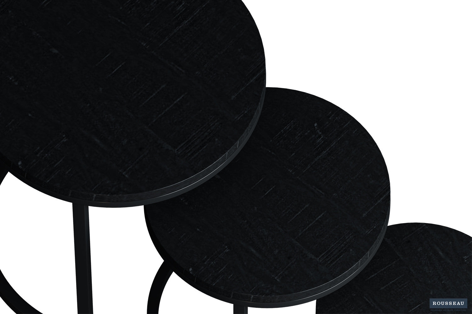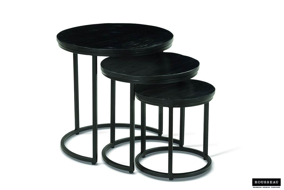 Bijzettafel 'Plano' 3-delig Mango hout zwart