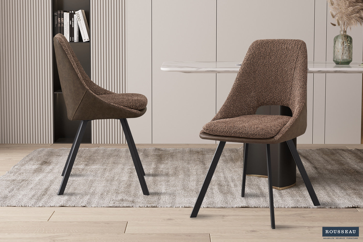Stoel 'Filou' Bouclé Zand Vloerkleed PU Bruin